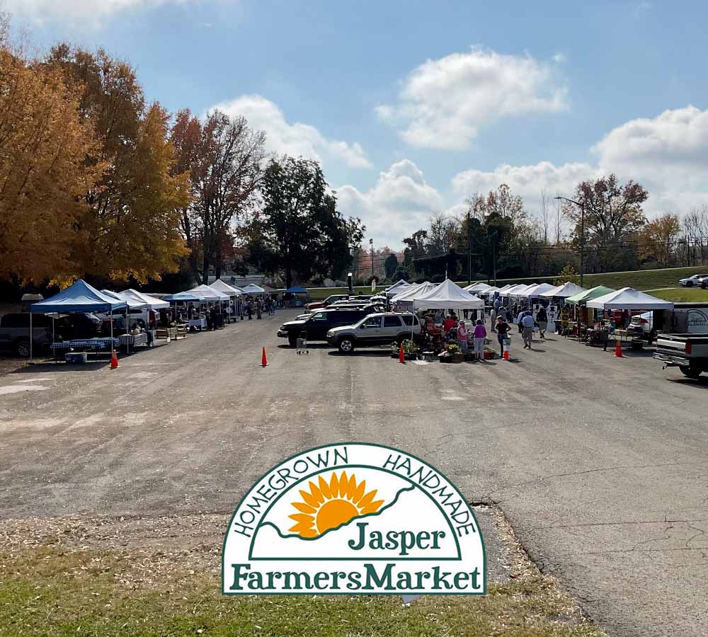 So! The Jasper Farmers Market opens at 9 am and closes at noon. It is located across from the Veterans Memorial in the Park N Ride parking lot. Plus, keep in mind that there are only a few more weeks left of the FM. It will run until December 13th. Keep a jacket handy to go with your shopping basket and hope it's not needed.