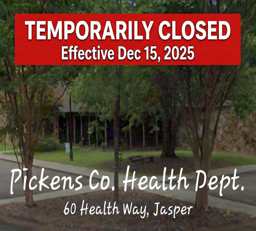 [ December 12, 2025 ] Starting Monday, Dec 15, 2025, The Pickens County Health Dept. is temporarily closing for mold remediation.