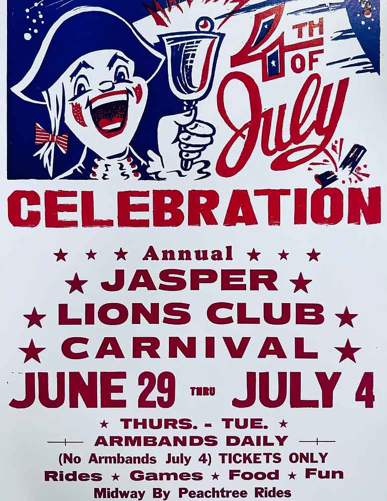 [ June 29, 2023 ] Jasper Lions Club's annual Independence Day Celebration 2023 will be held on Tuesday, July 4th in downtown Jasper and Lee Newton Park. Below is information on event including parade application, carnival, fireworks, bingo, and entertainment. Updates will be made as information is provided.